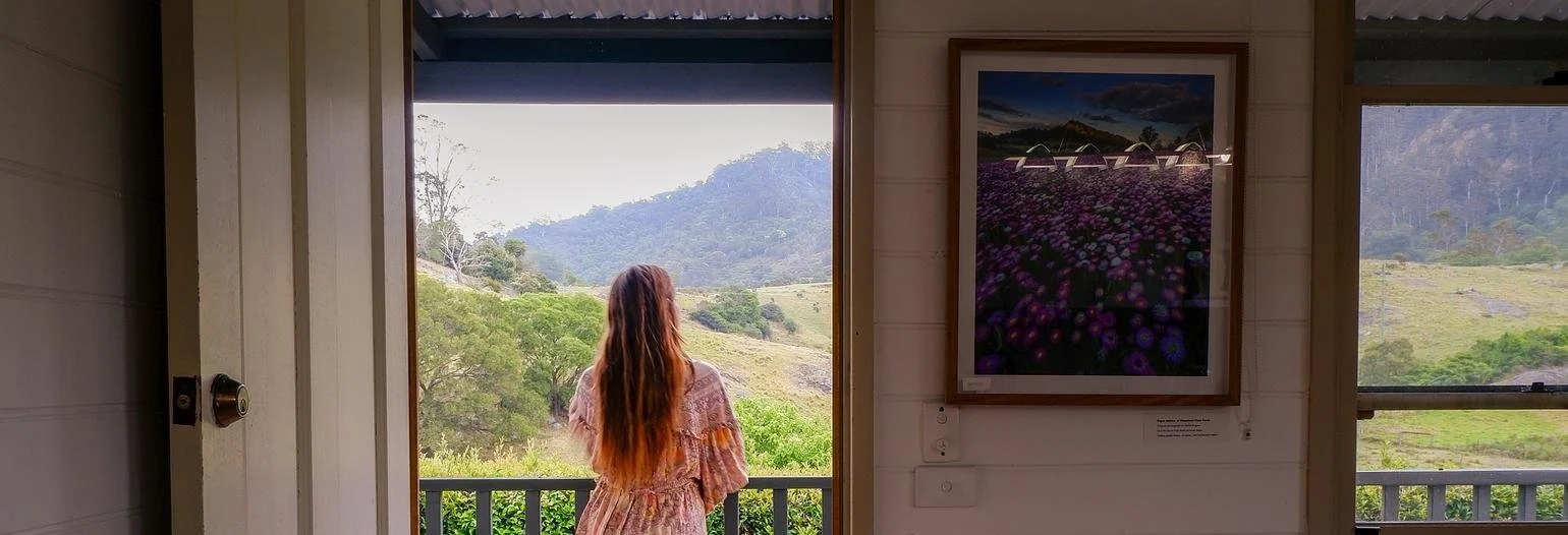 Up a private country road to the foot of a sacred mountain, nestled in a green valley strewn with paper daisies and sunflowers sits Mountain View Farm, a rural retreat steeped in everyday magic.